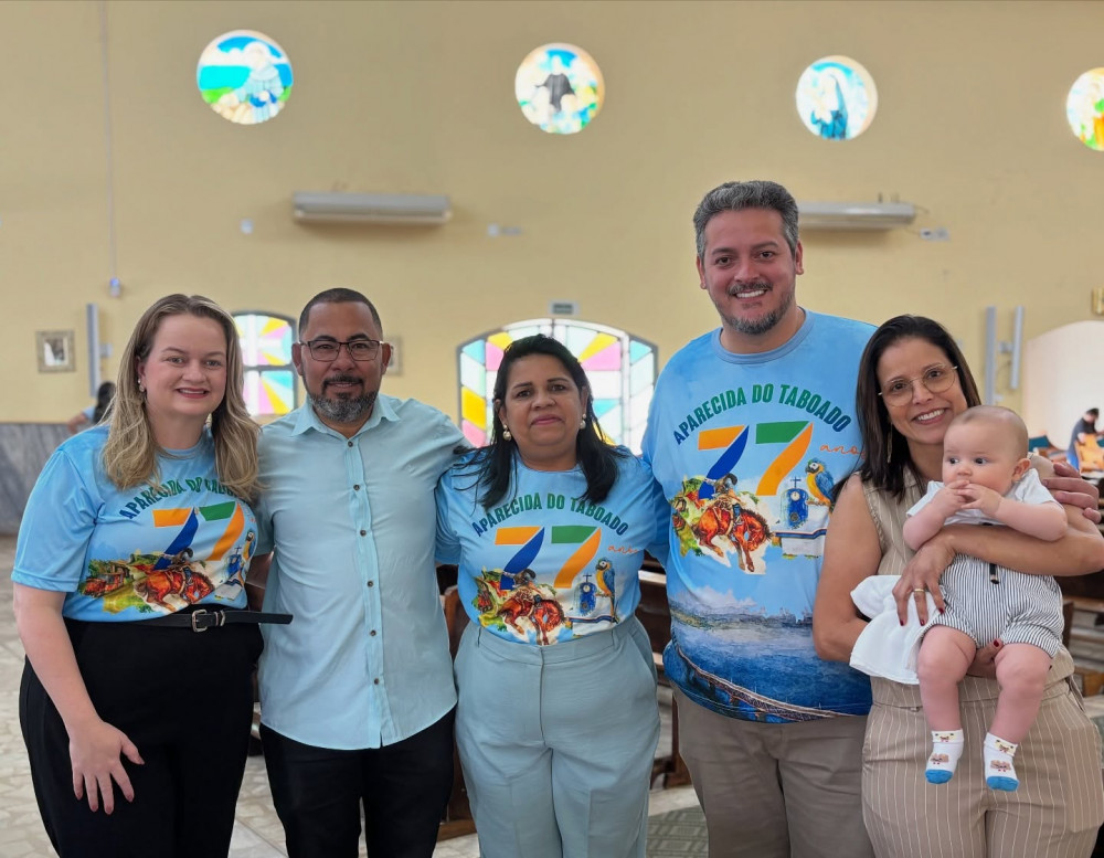Representando o Poder Legislativo, participaram da celebração o presidente da Câmara, vereador Ber Galter, a vereadora Dra. Amanda Tolentino, a vereadora Patrícia da Saúde e o vereador Edson Pinduca. Juntos, uniram-se à comunidade para agradecer a Deus pela trajetória de conquistas e pelo contínuo progresso de Aparecida do Taboado.